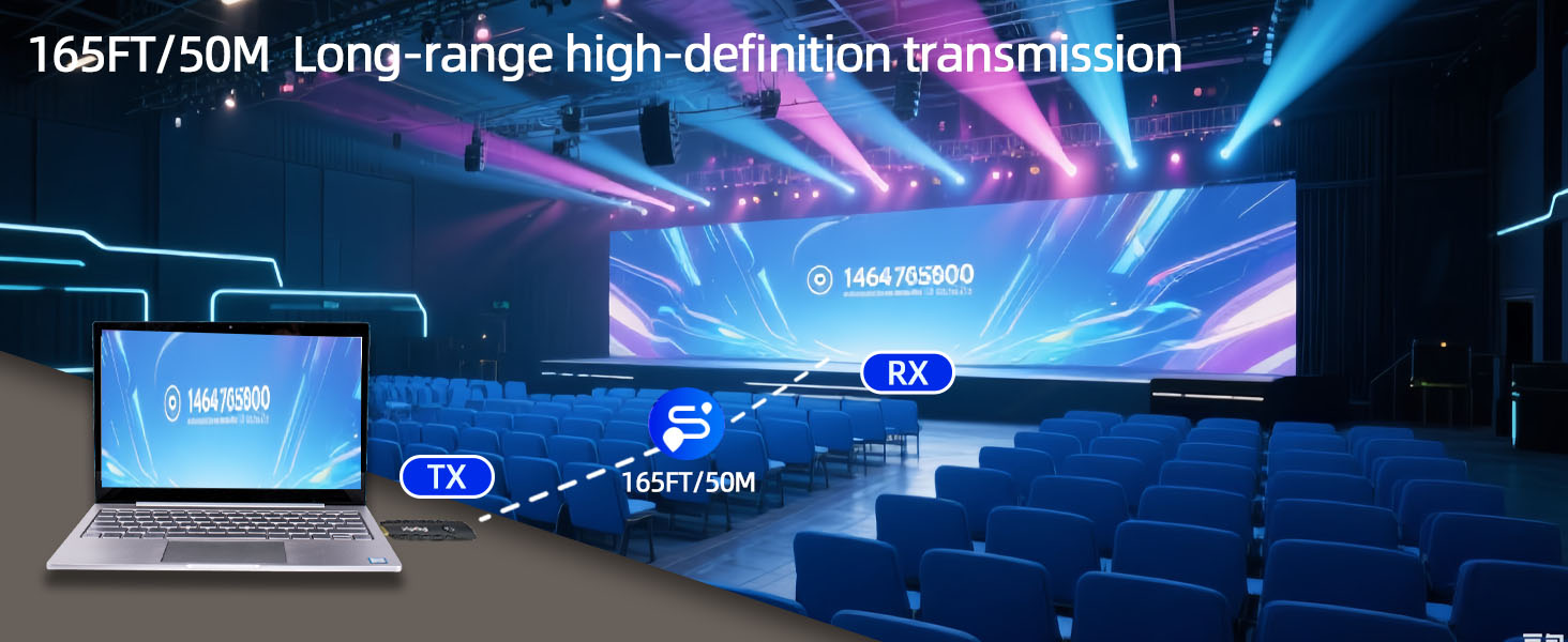 - 【164ft/50M Range with Dual-Gain Antennas】 Achieve a strong, stable connection up to 164 feet (50 meters) in open spaces using advanced 2.4G/5G transmission. The included external dual-gain antennas significantly boost signal range and reliability. (Note: Physical obstacles like walls may reduce range
