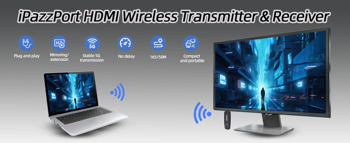 - 【1080P Full HD, Zero Latency Transmission】 Experience smooth, clear and stable picture quality. This wireless HDMI extender kit supports both mirroring (same screen) and extended mode (different screen). It decodes 4K video sources and outputs stunning 1080P @60Hz resolution for fluid streaming from small devices to your big screen(Win+P)